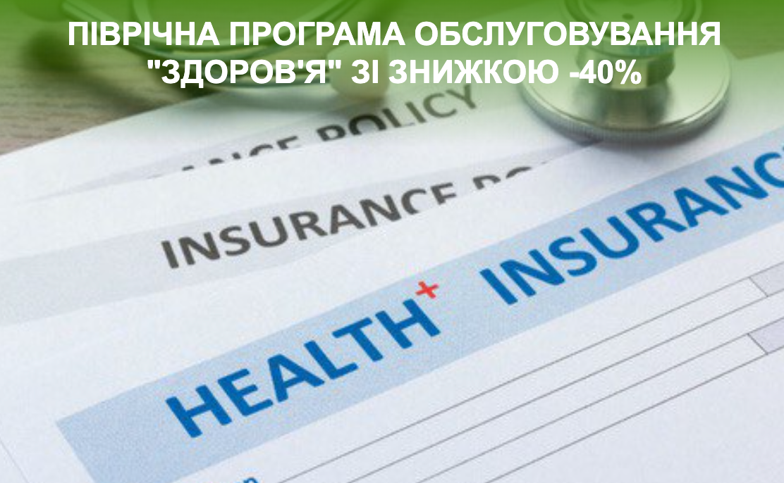 Для удобства, качества и своевременности оказания медицинской помощи мы разработали полугодовую программу "Здоровье" так, что каждый пациент самостоятельно может выбрать необходимые медицинские услуги со скидкой -40%, не выходя из рамок взноса 2640 грн!